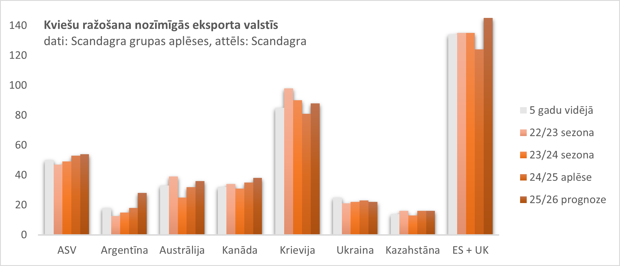 Scandagra grupa prognozē ražas kāpumu visos nozīmīgākajos reģionos, neskaitot Ukrainu. Lielajās eksporta valstīs tiek sagaidīta par 45 miljoniem tonnu lielāka raža kā gadu iepriekš. Savukārt, importa reģionos, Indijai tiek prognozēta 4 miljonu tonnu lielāka raža kā pirms gada un 17 miljonus tonnu virs piecu gadu vidējā apmēra.