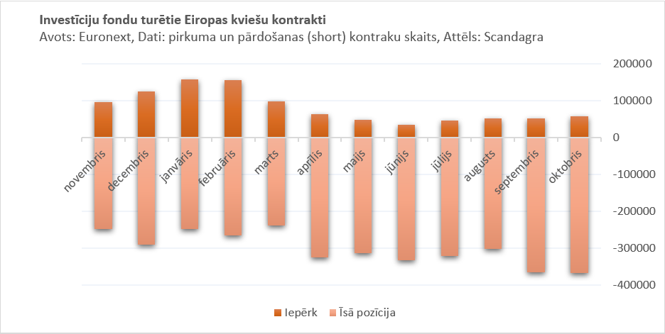 Fondi joprojām negatīvi noskaņoti pret Eiropas kviešiem. Vienas nedēļas laikā investīciju fondi pret kviešiem pievienoja 21 tūkstoti īso pozīciju, kamēr pirkuma pozīcijas pieauga tikai par 2 tūkstošiem nedēļas laikā. Kopējais negatīvisms ir nepilnus -309 tūkstošus liels. Iespējams, ka lielais pesimisma pieplūdums saistāms nevis ar fiziska tirgus datiem, bet tuvojošu noslēguma termiņu fiksācijai. Tikmēr, jaunie fondu pozīciju dati no ASV reģiona nav tikuši publicēti kopš 26. septembra, saistībā ar politiskajām kaujām. Dažādu datu nepieejamība rada investoru piesardzību, satraukumu un lielu diapazonu ar spekulācijām. Vēsturiski ir bijuši gadījumi, kad fondi izmanto datu nepieejamību, lai būtiski mainītu pozīcijas. Šāds stāvoklis stabilitātei nepalīdz.